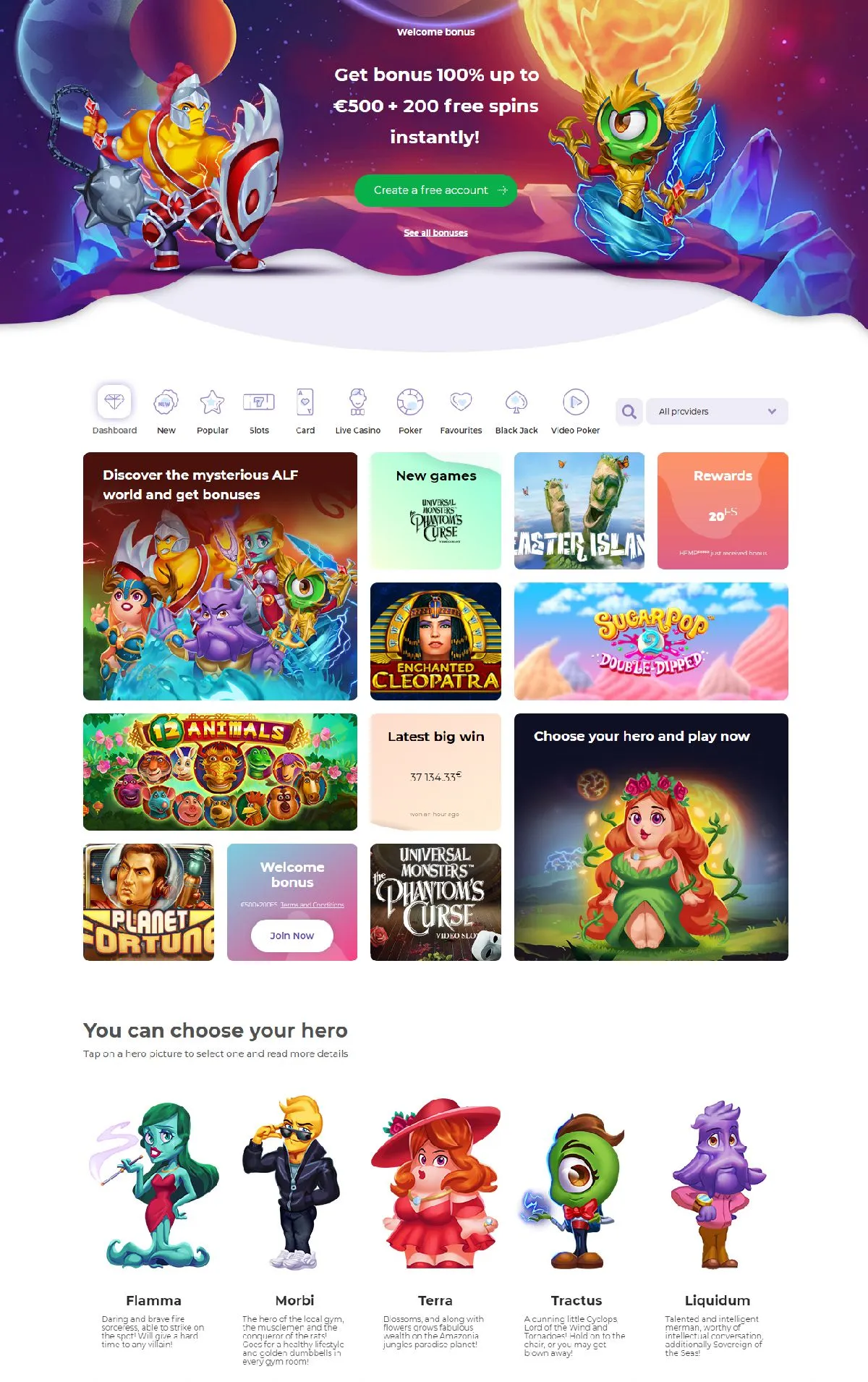 Alf Casino je zaměřeno na široké publikum: platforma obsahuje různé herní kategorie, bonusové nabídky a pravidelné turnaje. Všechny důležité podrobnosti najdete v následujících sekcích Alf Casino recenze.